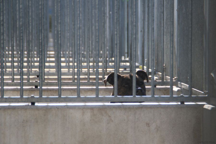 Son perros, gatos, patos, caballos, cerdos, incluso un poni que llegó “fino, fino y ahora está como una mesa camilla”, cuenta Sofía Ochoa, responsable de Participación Ciudadana del centro. Más de 6.000 pasan al año por estas instalaciones, que ahora se encuentran al 130% de ocupación. Algunos las abandonan en unos pocos días; otros pasan años aquí. El tiempo les cae encima y miran cada vez con más tristeza. Pero la mayoría sigue alborotándose cuando ve pasar un chaleco naranja: el que llevan los voluntarios, casi 200 a lo largo de 2016, que se encargan de darles cariño, de pasearlos y jugar con ellos. Los sacan durante un rato de ese espacio en el que hay comida, agua y calefacción, pero que no deja de ser una jaula.