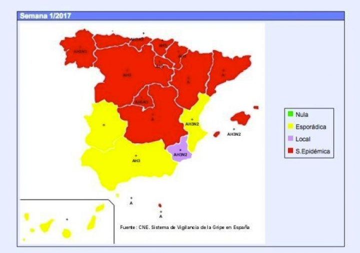 Pero, ¿es una secuencia realmente inevitable? En España existe un Sistema de Vigilancia de la Gripe que monitoriza semanalmente la difusión y la intensidad del virus. Sus últimos datos muestran que se ha convertido en epidemia en once comunidades autónomas: Galicia, Asturias, Cantabria, País Vasco, Navarra, Aragón, Cataluña, Castilla y León, La Rioja, Madrid y Baleares. Hay 174,5 casos por cada 100.000 habitantes y se observa un incremento significativo de contagios en los grupos de 15 a 64 y mayores de 64.