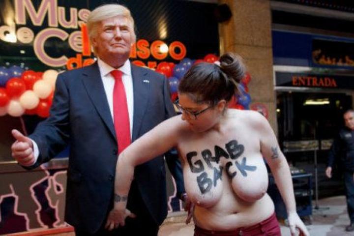La figura del presidente electo de EEUU, Donald Trump, ha llegado este martes al Museo de Cera de Madrid, coincidiendo con la semana en la que se iniciará su mandato. Durante la presentación de su estatua, una activista de Femen ha irrumpido al grito de "Grab them by the balls!" y "¡Agarrad al patriarcado por los huevos!".