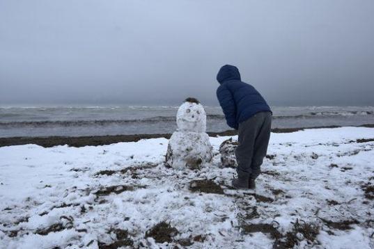Un manto de nieve cubre esta mañana la costa alicantina en municipios como Dénia y Xàbia, y ha llevado a cortar el tráfico en la carretera de Les Planes, que une ambas poblaciones por el Montgó. Hasta en las playas los niños hacen muñecos de nieve.