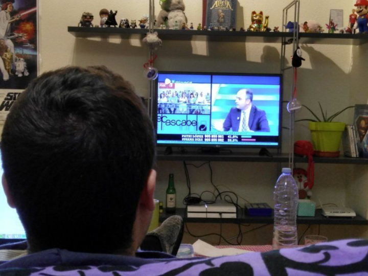 21:30 La televisión me ha absorbido. No sé qué día es. Sólo sé que Patxi López es sectario y que coquetea con ETA y que probablemente robe tabaco en los bares. Que es el día de la croqueta y que va a hacer frío. Mucho frío. No sé quién soy ni cuánto tiempo llevo escuchando y viendo a estos tipos.