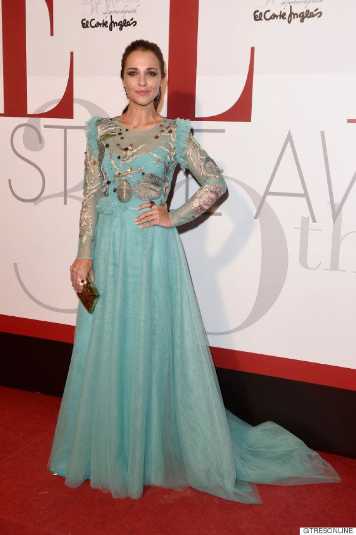 Apenas un mes después de que se viera sobre la pasarela de la Cibeles-Mercedes-Benz Fashion Week Madrid, Paula Echevarría ya lo estaba luciendo sobre una alfombra roja. Se trata de un vestido en color aguamarina con bordados y falda de tul que el diseñador Jorge Vázquez presentó en septiembre y que la actriz eligió para ponérselo en los Elle Style Awards en octubre.
