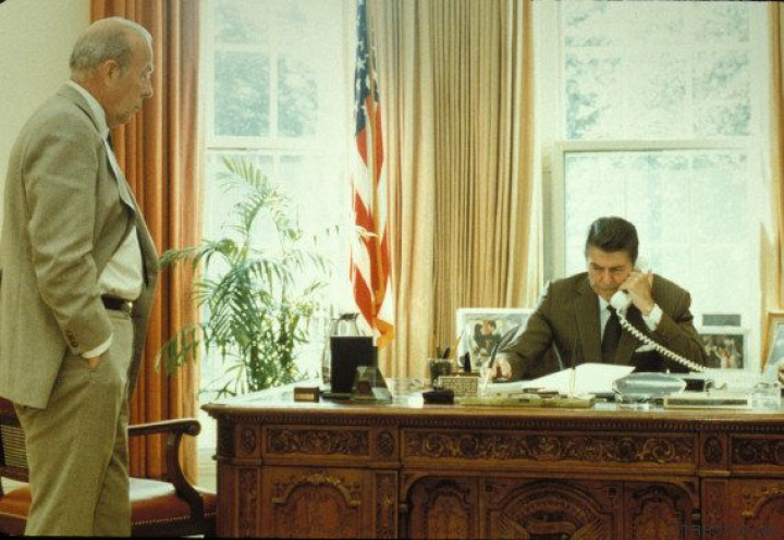 Ronald Reagan, en el escritorio Resolute del Despacho Oval.