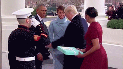 No es raro que el matrimonio presidencial entrante obsequie al saliente con un pequeño presente. Pero Melania Trump ha roto este viernes el protocolo de la transición haciéndole entrega del regalo a Michelle en la misma puerta de la Casa Blanca. Se trata de una caja azul de Tiffany's, la mítica tienda.