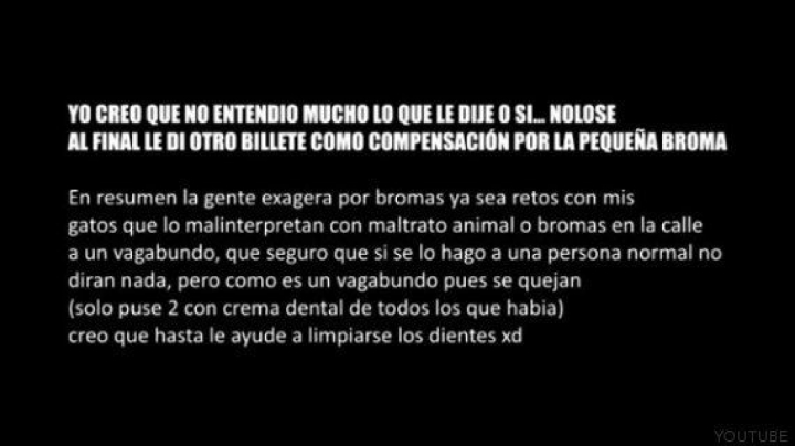 Reset, que tiene un millón de suscriptores en su canal de YouTube, suele publicar vídeos que, según él, deberían ser graciosos, en los que se ve cómo se da tartazos en la cara con amigos o cómo hace retos con comida picante. Sin embargo, en este último vídeo (publicado el lunes 16 de enero) ha ido un paso más allá. Titulado Reto ayudar vagabundo, al parecer todo parte de un usuario de Twitter que le mandó un mensaje: "t reto a que compres galletas oreos y le quites la cremita y luego le eches pasta dental :U y se la das a alguien en la calle" (sic). Y él, decidido, se apunta a tan digna hazaña: "Me parece interesante este reto, así que vamos a hacerlo".