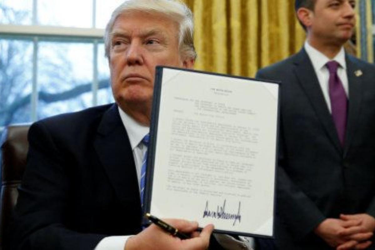 Donald Trump ha firmado este lunes tres órdenes ejecutivas, entre las cuales está la que fuerza la salida de Estados Unidos del Tratado Transpacífico (TTP).