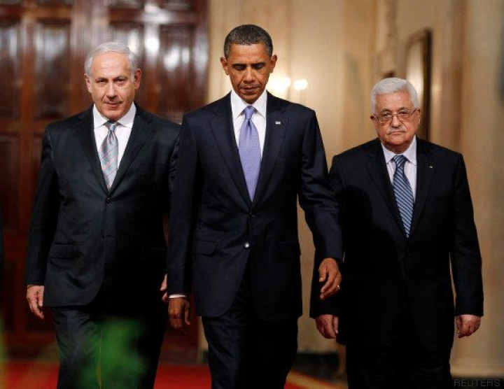 Benjamín Netanyahu y Mahmud Abbas, con Barack Obama en la Casa Blanca en 2010.