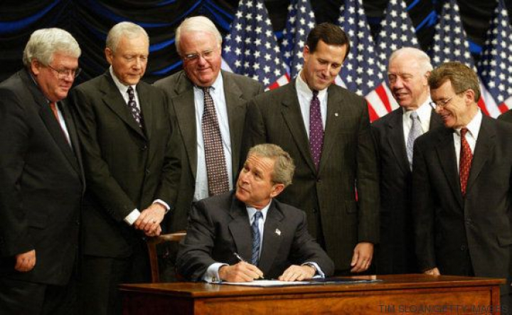 En 2003, el presidente George W. Bush firmó una ley que prohibía una técnica para realizar abortos a embarazadas de más de tres meses según la cual los médicos tenían que dejar de aplicar un procedimiento de aborto en concreto. Estaba rodeado de un grupo de congresistas, todos hombres, cuando lo hizo.