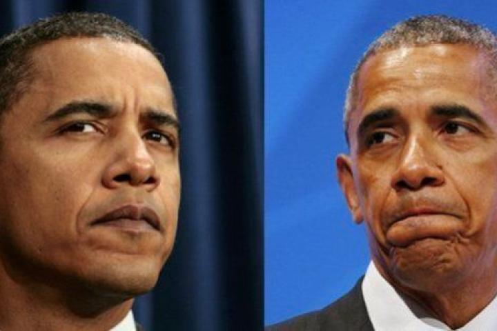 La faz de Obama muestra huellas de un envejecimiento, profundizado quizás por el peso del cargo y de las decisiones que ha tenido que tomar. Las canas y las arrugas abundan en un rostro más enjuto.