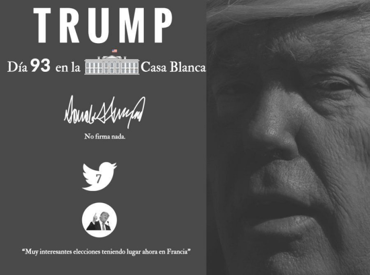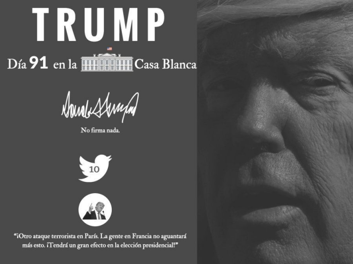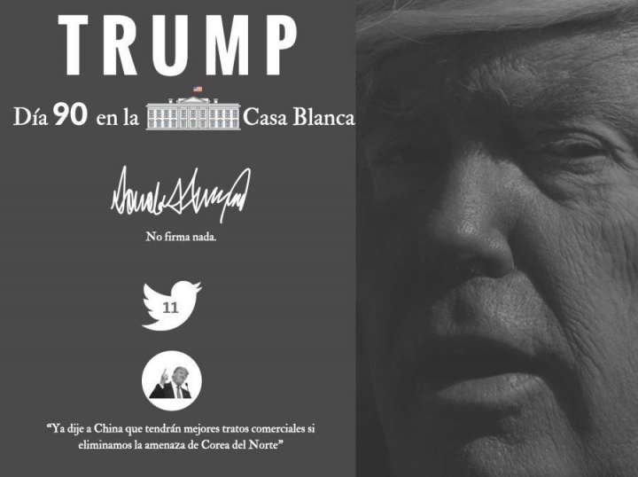 En el día 90 de la presidencia de Trump, un mal dato: Gallup: le da un 41% de aprobación en su primer trimestre. Es La más baja de ningún presidente desde la Segunda Guerra Mundial.