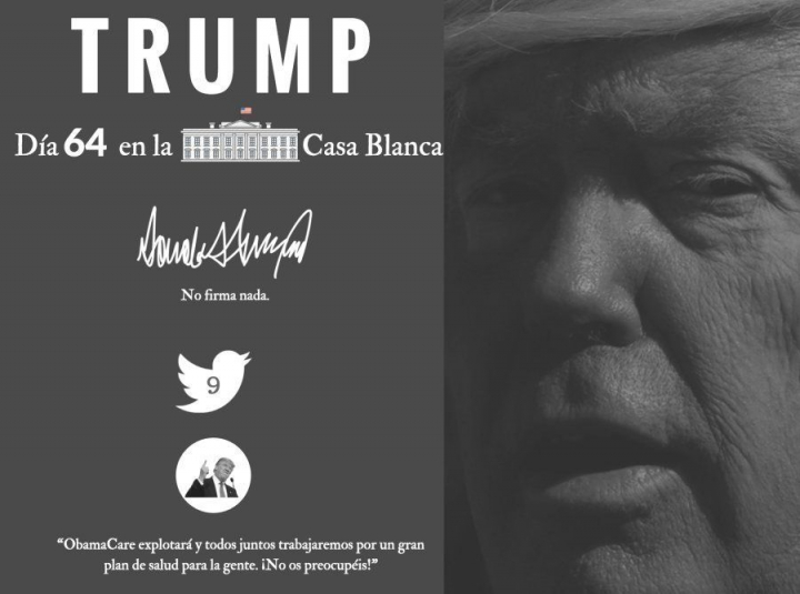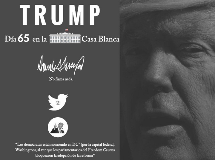 Pese a la euforia que demuestra en su cuenta de Twitter, el día acaba de la peor manera para Trump: sin su tan ansiada reforma sanitaria que ponga fin al Obamacare. Después de aplazar la votación, el presidente de la Cámara de Representantes, Paul Ryan, se acercó a la Casa Blanca para decirle al presidente que no contaban con los apoyos necesarios para sacar adelante el plan. Esto les obligó a dar marcha atrás y a retirar su plan. Ante esto, hay dos conclusiones obvias: la humillación pública de Trump y, por otro lado, hasta qué punto queda debilitado su liderazgo en el partido.