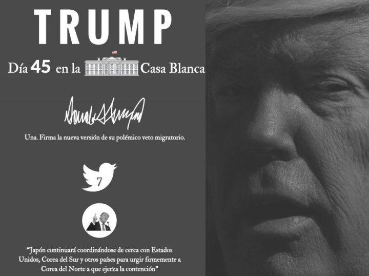 Día de gran intensidad, porque el presidente de EEUU vuelve a la carga con su veto migratorio: firma la nueva orden en la que se mantiene el núcleo duro de la anterior. Eso sí, saca a Irak de la lista de países vetados, pero mantiene a otros seis: Irán, Somalia, Yemen, Libia, Siria y Sudán. A diferencia de la anterior orden, en esta se especifica que pueden entrar a Estados Unidos los ciudadanos de esos seis países que tuvieran un visado válido antes de las 17.00 hora local (22.00 GMT) del 27 de enero, la fecha en la que se emitió la primera orden ejecutiva sobre inmigrantes y refugiados.