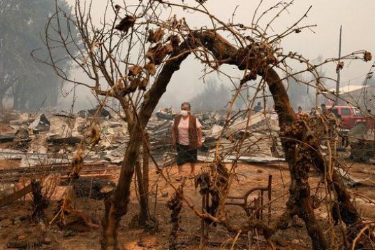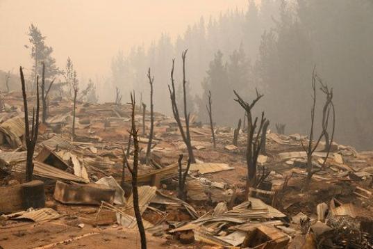 Montañas grises, villas carbonizadas, carreteras inservibles. Todo es desolación en el centro-sur de Chile, una región costera donde abundaban los cultivos de pinos y eucaliptos, transformada en páramo por los incendios que, desde hace un mes, machacan la zona. Ni los terremotos ni los tsunamis que suelen azotar la zona tienen comparación con el daño de las llamas.