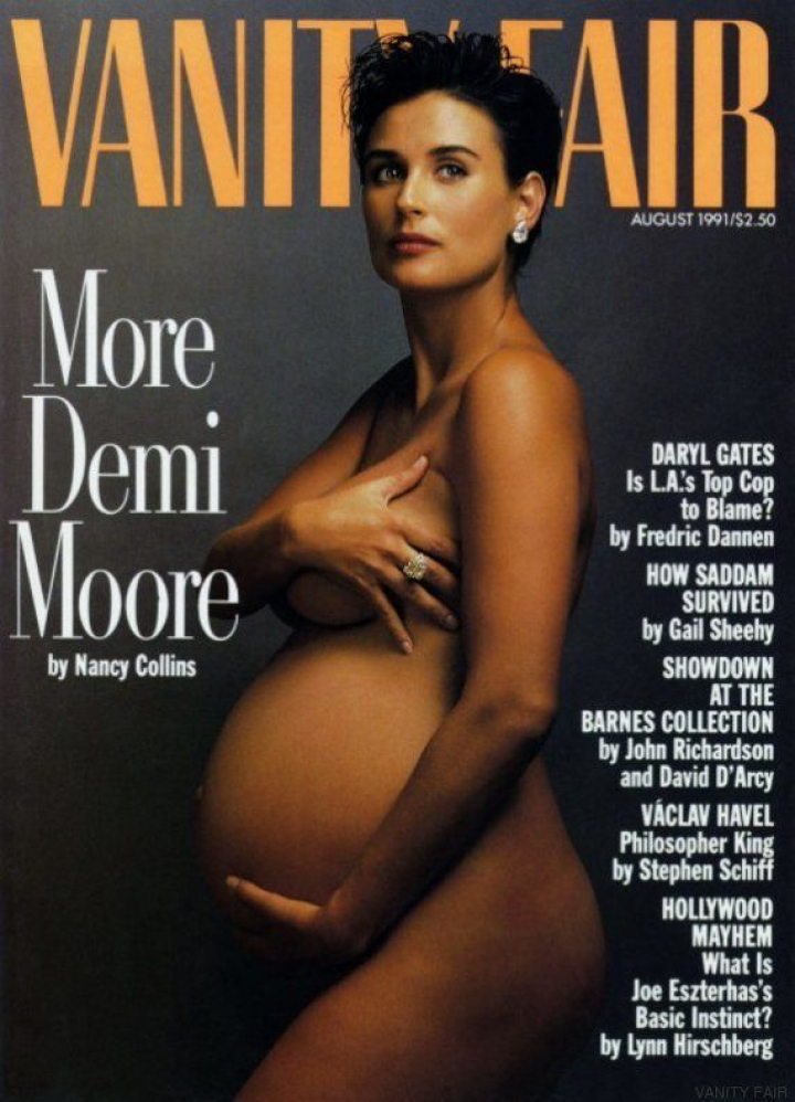 La actriz Natalie Portman ha posado desnuda y embarazada para la revista Vanity Fair igual que lo hizo Demi Moore en 1991. Portman —al igual que Moore— ha sido fotografiada por la prestigiosa fotógrafa Annie Leibovitz.
