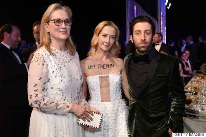 Durante la gala también se pudo escuchar algunos mensajes contra Trump. "Estamos en una época muy delicada en el mundo y en nuestro país y las cosas son intolerables, escalofriantes y requieren acción", señaló la actriz de La La Land Emma Stone. "Cuando nos juntamos todos como raza humana, nosotros ganamos y el amor gana siempre", apuntó la actriz de Figuras Ocultas Taraji P. Henson. "Rechazaremos a los abusones, acogeremos a los bichos raros y los marginados, a los que no tienen casa. Superaremos las mentiras, cazaremos monstruos", gritó David Harbour, de la serie Stranger Things.