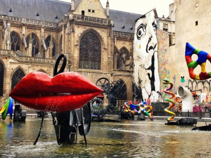 4. Junto a este centro se encuentra la plaza Georges Pompidou, que sirve de espacio para músicos callejeros, mimos o artistas. Además, también se organizan competiciones de skate e incluso se habilitan mesas para cenar en las noches de verano. Fue la concepción de esta plaza la que hizo que el proyecto de Rogers, Piano y Franchini se hiciese con la victoria. En uno de sus laterales, se levantó en 1983 la fuente Stravinsky, dedicada al compositor ruso, y que cuenta con una estructura de dieciséis esculturas. Diseñada por los escultores Jean Tinguely y Niki de Saint Phalle, incluye piezas en movimiento y aspersores de agua que intentan homenajear el trabajo de Stravinsky.
