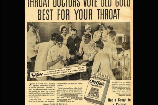 Antes de las campañas contra el tabaco, había muchos anuncios pro-fumadores. A finales del siglo 19 y 20, la inhalación de humo de la combustión del tabaco era una terapia sugerida contra el asma.