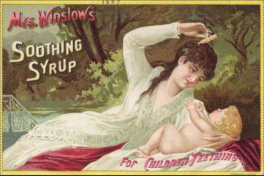 El jarabe calmante de Mrs. Winslow era una fórmula popular que surgió a finales de 1800 para ayudar a aliviar la molestias del proceso de dentición de los niños pequeños. ¿Qué hacía especial a este jarabe? El alcohol y sulfato de morfina...