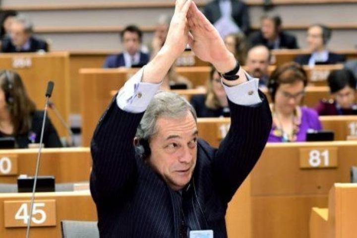 Sus discursos pueden gustar más o menos, pero lo cierto es que no suelen dejar indiferente a nadie. Pero esta vez, la atención se la ha llevado otra persona mientras él hablaba. Concretamente un diputado que estaba sentado detrás de él. Todo comenzó cuando el ex líder del eurófobo Partido para la Independencia del Reino Unido (UKIP), Nigel Farage, estaba interviniendo en el Parlamento Europeo... Cuando pasó esto: