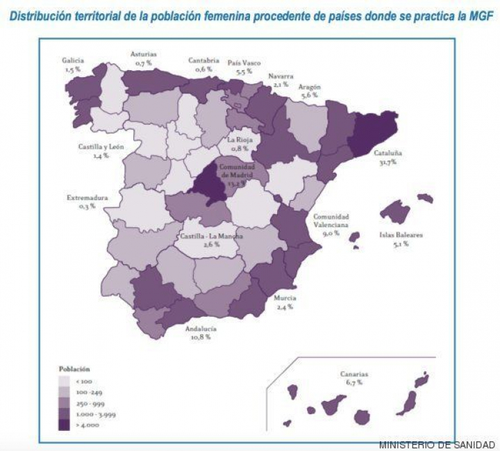 Yolanda Rodríguez, actual presidenta de Médicos del Mundo (MDM) Navarra y portavoz sobre mutilación genital femenina en dicha ONG, explica que en nuestro país no puede hablarse de un "problema", porque la emigración desde los países donde esta práctica está extendida es "minoritaria". Según datos del Ministerio de Sanidad, hay unas 200.000 personas procedentes de dichos estados, de los que 55.000 son mujeres y niñas. Pese a ello, hay que estar "vigilantes" para que no se produzcan casos en las 24.000 chicas en que se cifra la población de riesgo, según el cálculo de la Fundación Wassu de la Universidad Autónoma de Barcelona.