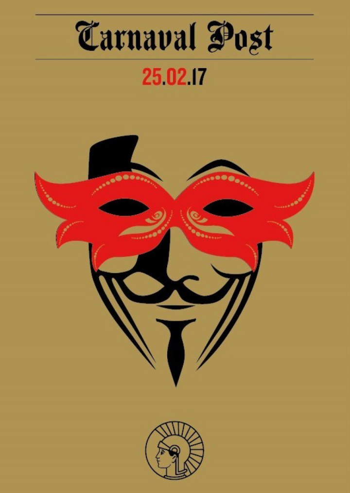 La fachada del Círculo de Bellas Artes de Madrid luce desde la pasada semana un enorme cartel con la máscara de Anonymous ataviada con un antifaz rojo. Es el mural que sirve para anunciar su próximo Baile de Máscaras, que se celebrará el próximo 25 de febrero bajo el lema Carnaval Post.