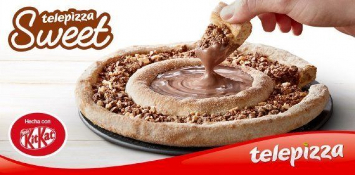 Muchos pensaron que se trataba de una broma pero no. Es real. Telepizza ha lanzado este martes su primera pizza dulce, llamada Sweet. Para elaborar este producto, la empresa se ha aliado con la marca de chocolatinas KitKat.