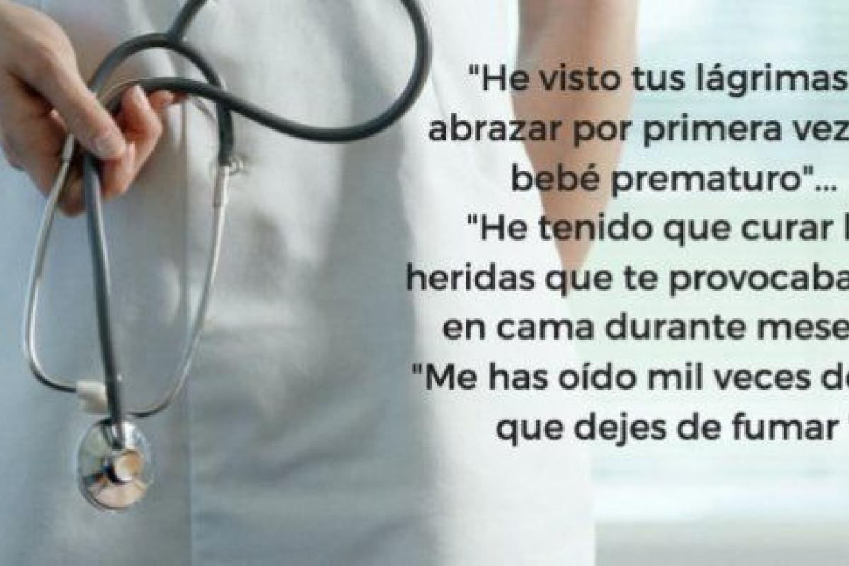 "He visto tus lágrimas al abrazar por primera vez a tu bebé prematuro"... "Me ha tocado darte la mano cuando te daban malas noticias y me ha tocado darle las malas noticias a tus hijos por teléfono"... "Me has oído mil veces decirte que dejes de fumar y al final del día he pensado en ti en mi casa, en cómo estarás... en si estarás mejor".