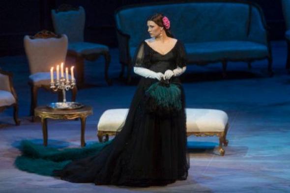 Nada más lejos de la heterodoxia historicista de la reina de Francia al son de la música de The Strokes, ni más cerca de los rigores de pasarela de alta costura al ritmo de los vestidos de Valentino, que terminó revelándose como el verdadero factótum de este montaje de la Ópera de Roma, donde se estrenó la temporada pasada. Se había comprometido el diseñador italiano a respetar el libreto original, alegando que la cortesana Violetta no podía ir vestida "con impermeables ni trajes ridículos". Pero subestimó la vigencia de la música de Verdi, cuya partitura aspira, precisamente, a salpicar al espectador y enfrentarlo a las más ridículas contradicciones de su tiempo.