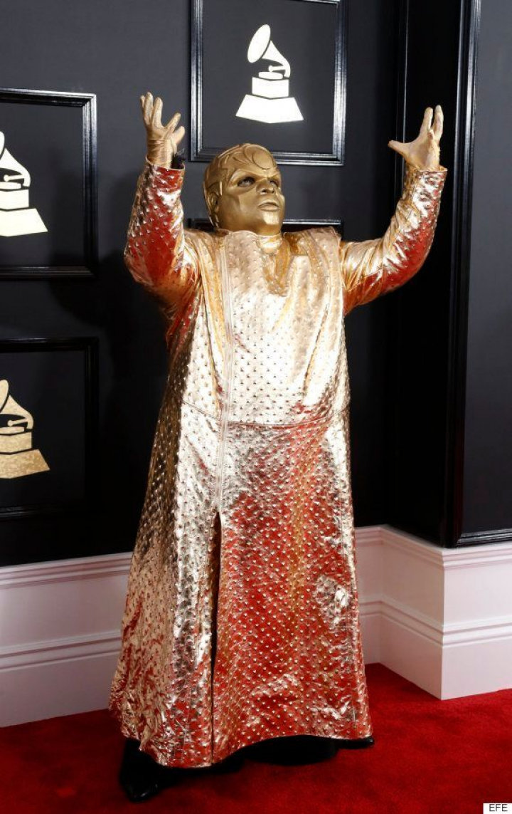 Hubo una gran ausente ante las cámaras, Beyoncé, quien después protagonizó una alucinante actuación ataviada como una diosa de la maternidad. La nota la dieron la cantante Joy Villa con un vestido de apoyo a Donald Trump y el cantante Cee Lo Green, quien acudió maquillado completamente de dorado.