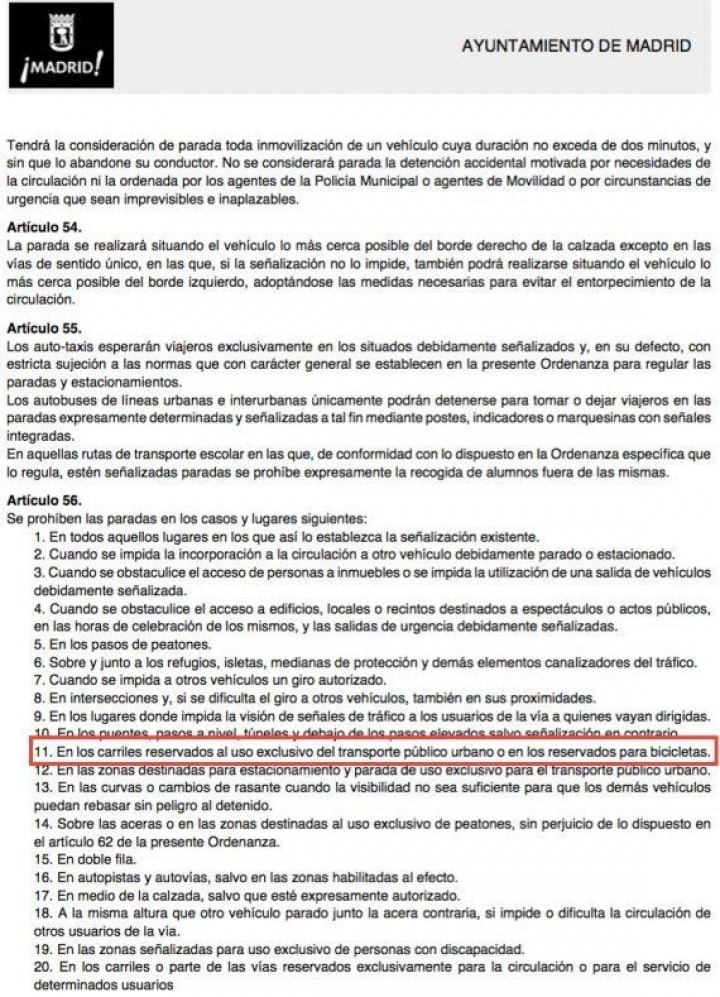 En su comparencia justificó que "se puede hacer", aunque la Ordenanza de Movilidad del Ayuntamiento de Madrid estipula todo lo contrario.