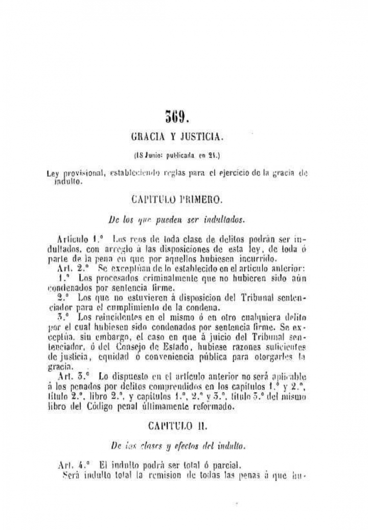 Primera página de la Ley de Reglas para el ejercicio de la Gracia de Indulto