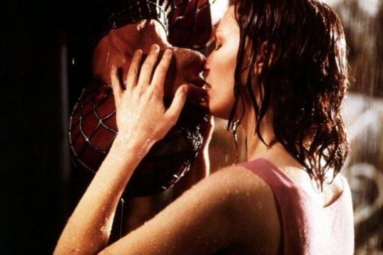 Tobey Maguire: "Probablemente lo más difícil que tuve que hacer como Spiderman fue besar a Kirsten Dunst. Cuando rodamos la escena del beso, yo estaba colgado con la cabeza para abajo, era muy tarde, estaba lloviendo y el agua no paraba de ent...