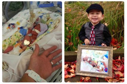 "Este es mi hijo, Jesse. Nació cuando yo estaba embarazada de 25 semanas y 6 días. Pesó 950 gramos y midió 34 centímetros, y llegó a pesar 350 gramos. Pasó 66 días en la UCIN, tuvo sus momentos duros, pero acabó pudiendo salir del hospi...