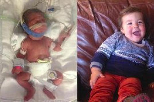 "Mi hijo Luke nació a las 29 semanas y 6 días. Pesó poco menos de un kilo y midió 33 centímetros. Ahora, con tres años, le encanta bailar, es un niño muy divertido y feliz".