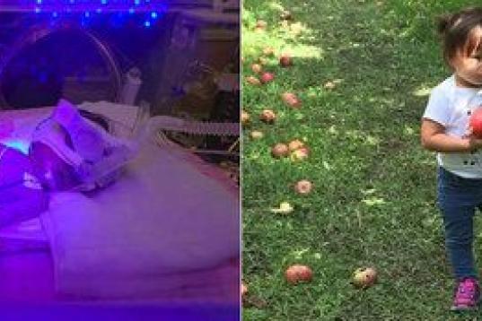 "Esta es mi hija, Bay Olivia. Nació ocho semanas antes de lo previsto. Tuvo que pasar muchas dificultades que la mayoría de los bebés prematuros han de superar. Durante el primer año de su vida sufrió reflujo gastroesofágico. También tuvo...