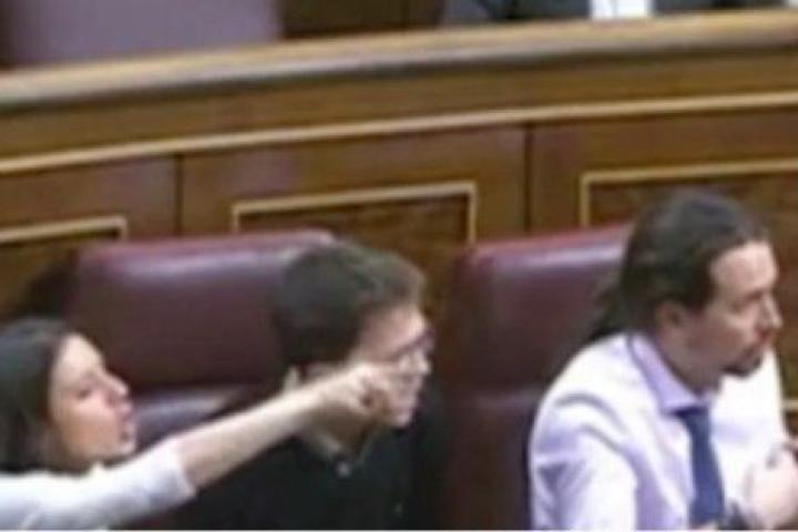 En ese momento, Irene Montero comenzó a dirigirse a Montoro con aspavientos, protesta a la que se unió Pablo Iglesias.