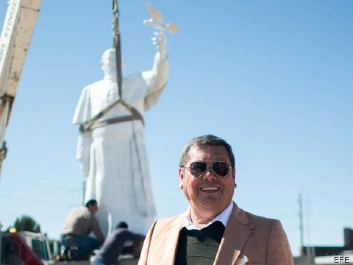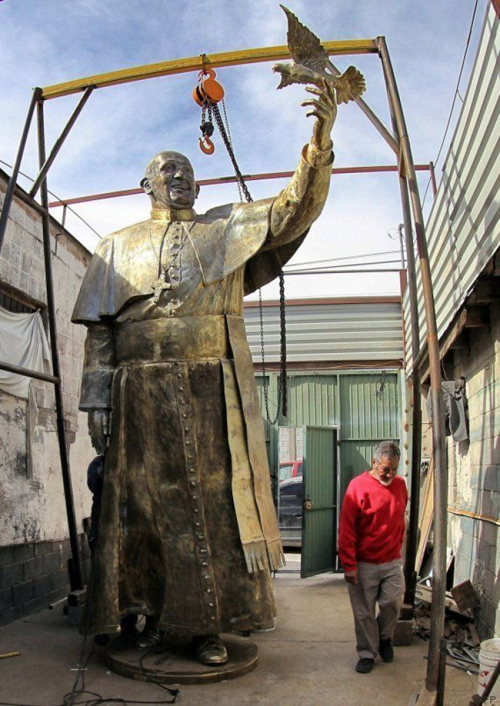 La estatua pesa 1.110 kilos y mide 4,60 metros y muestra al papa sonriente. Según el escultor, fue el presidente de la Cámara Nacional de Comercio (Canaco) de Ciudad Juárez, Alejandro Ramírez, quien convenció a un grupo de empresarios para homenajear al pontífice con una escultura en la ciudad limítrofe con El Paso (Texas, EEUU).