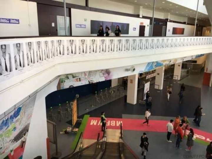 Después, quienes han acudido a los desfiles de MBFWM han encontrado el pabellón 14.1 forrado de los mismos carteles por toda su entrada y sus altas y diáfanas escaleras mecánicas: cientos de pósters de la modelo empapelaban las paredes.