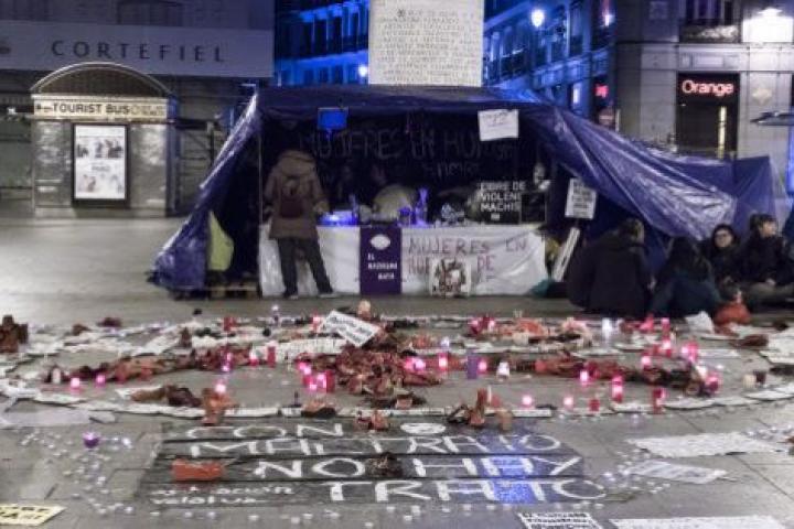 Gloria, Susana, Martina, Sara, Celia y Sonia llevan ocho días en huelga de hambre. Desde la puerta del Sol de Madrid, cuna de la indignación ciudadana desde el movimiento 15-M, reclaman un pacto de Estado contra la violencia machista, que se especialice la ley para cada tipo de maltrato y que se contemple la figura del "feminicidio". De momento, no tienen respuesta de las instituciones. Únicamente una una carpa de verano que les ha prestado el Ayuntamiento de Madrid.