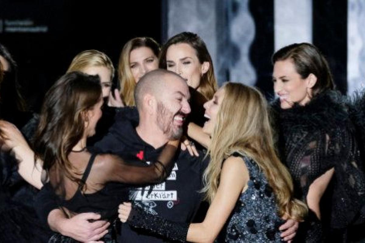 Juan Duyos ha celebrado este lunes sus veinte años en la moda con veinte vestidos para diez top españolas que han convertido la pasarela en una fiesta, un desfile emocionante con el que ha escrito una página en la historia de la pasarela madrileña.