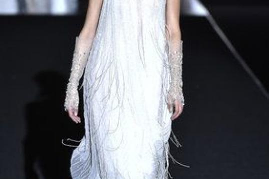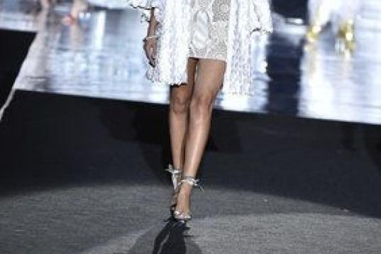 Los diez primeros modelos de Juan Duyos —todos vestidos, salvo un esmoquin de lentejuelas— han sido blancos, unas propuestas que derrochaban vitalidad, frescura y alegría y que se conjuntaban con vistosos zapatos de la firma Custom&Chic.