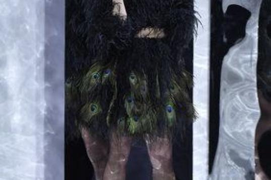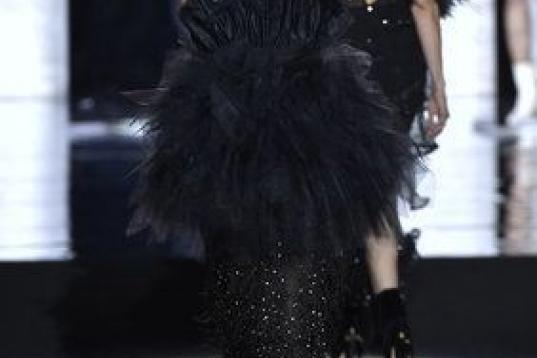 Los otros diez han sido todos negros, un color que Duyos no suele utilizar, y que en esta ocasión ha contado con él con "la intención de cerrar una etapa, de subrayar mi historia", ha añadido el diseñador, que al final del desfile ha recibido un caluroso aplauso, con la gente en pie, incluida la bancada de la prensa.