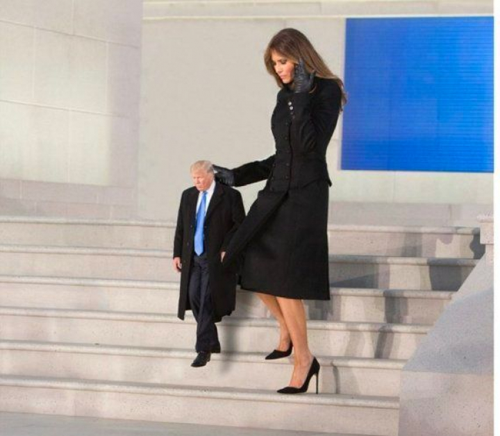 El presidente parece estar obsesionado con su imagen y se enfada bastante cuando se bromea sobre lo pequeñas que tiene las manos. Le gusta que la gente lo considere un hombre grande, así que, para los bromistas, nada más divertido que convertirlo en un ser de Liliput. La burla se hizo viral con fotos como estas.