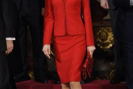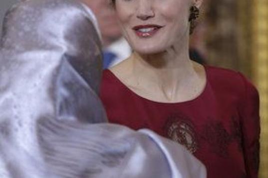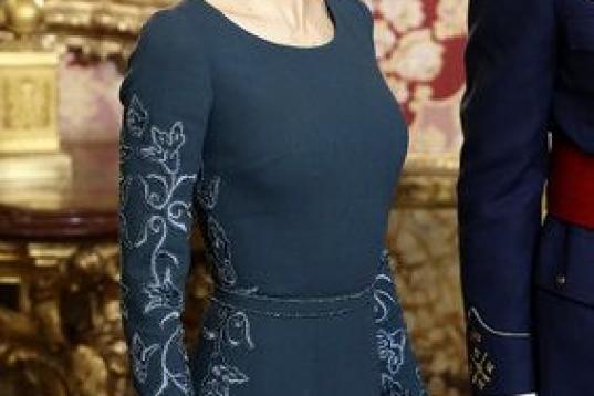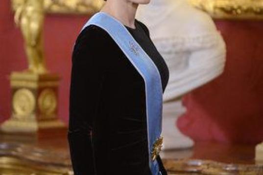 En la cena de gala en honor al presidente Mauricio Macri y su esposa, Juliana Awada, en la que lució por primera vez joyas de pasar de la Casa Real, en concreto la simbólica tiara Flor de Lis.