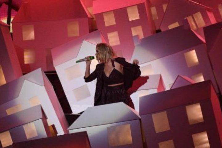 En directo, ante el público del O2 Arena, se presentaron Katy Perry para desgranar el tema Chained to the Rhythm y Bruno Mars, que recibió la ovación de los espectadores con su interpretación de That's What I Like. La actuación de Perry se cargó de contenido político al aparecer junto a ella dos marionetas vestidas con trajes similares a los que lucían el presidente de Estados Unidos, Donald Trump, y la primera ministra británica, Theresa May, en su encuentro en la Casa Blanca en enero.