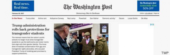 La frase "La democracia muere en las tinieblas" ha aparecido en la portada de la edición en línea del diario.