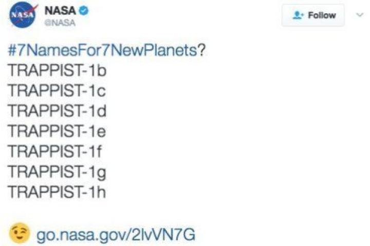 Con la etiqueta #7NamesFor7NewPlanets (#7NombresPara7NuevosPlanetas), la NASA probó suerte...