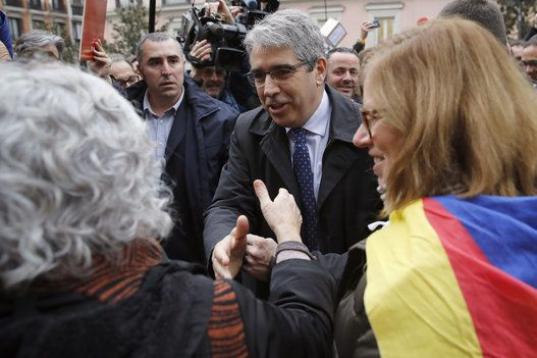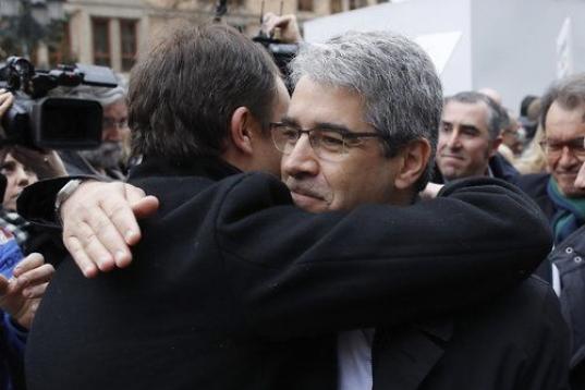 Francecs Homs ha llegado al Tribunal Supremo con su mujer y arropado por el expresident de la Generalitat Artur Mas, parte del actual Govern y más de un centenar de personas a favor del referéndum de Cataluña.