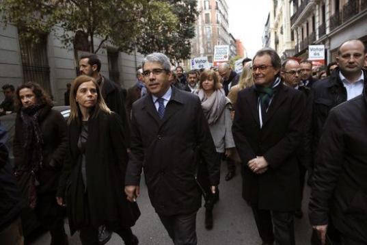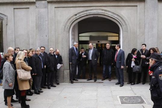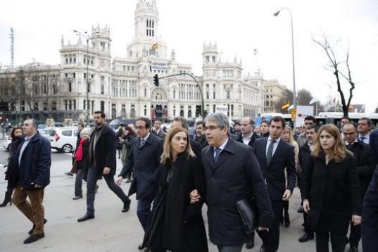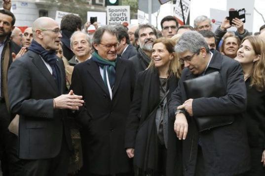 Entre otros, además de Artur Mas, le han acompañado en una marcha desde la madrileña plaza del Rey hasta el alto tribunal la vicepresidenta de la Generalitat, Neus Munté; el conseller de Exteriores, Raül Romeva; la cúpula del PDeCAT y cargos de ERC como Joan Tardá y Gabriel Rufián.