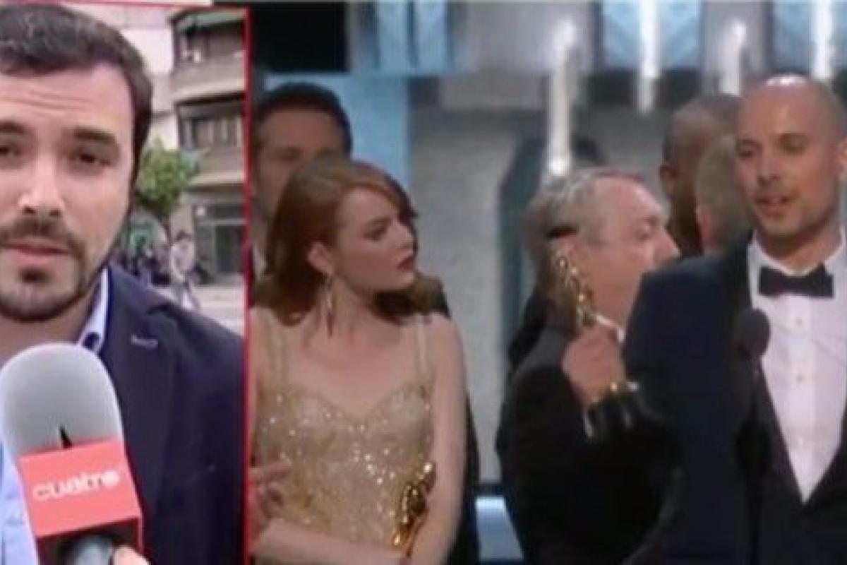 El líder de IU, Alberto Garzón, ha planteado una reflexión —en Las Mañanas de Cuatro— muy aplaudida en Twitter sobre la pifia en la entrega al Premio a la Mejor Película en última edición de los Oscar.